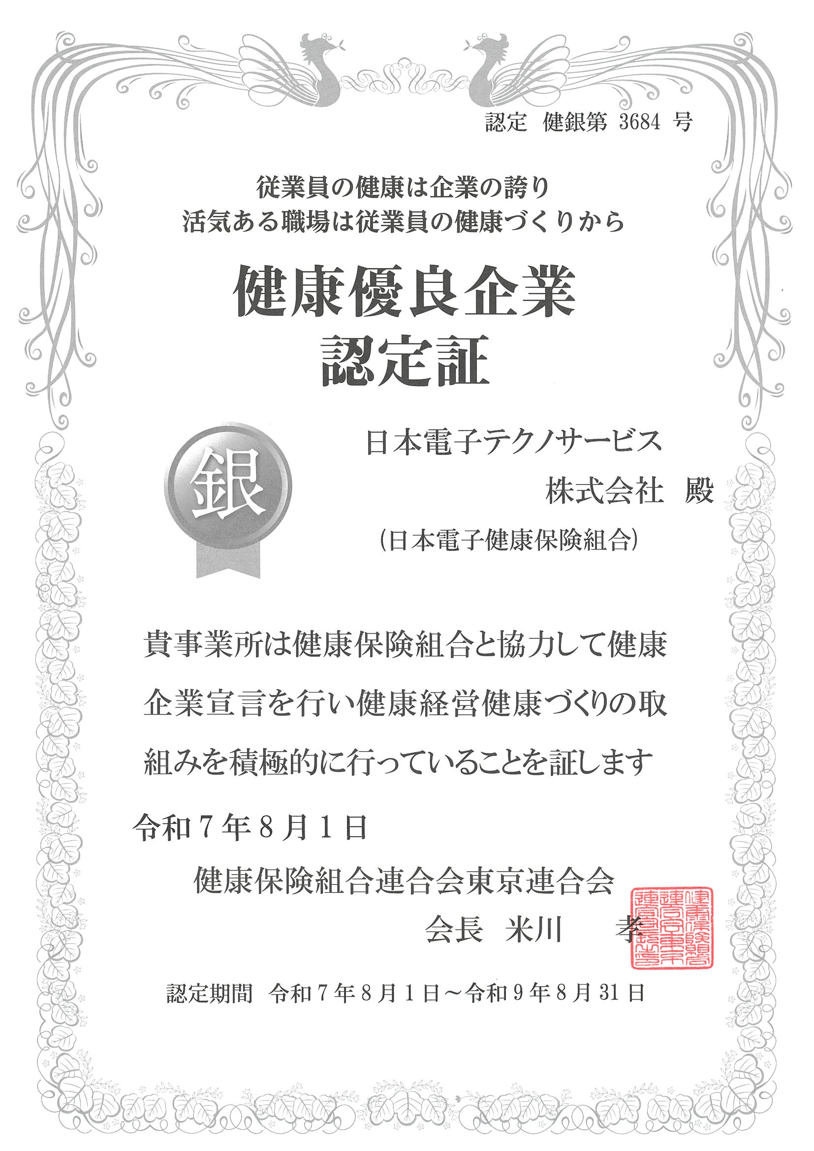 ■健康優良企業「銀の認定」(令和7年8月1日 認定)